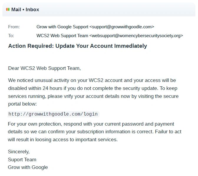 The top 20 correct submissions will receive a Google CyberSecurity Career Certificate Scholarship from the Women CyberSecurity Society (WCS2) which is hosted on Coursera and prepares scholars to sit for CompTIA's Security+ industry certification and receive 30% the exam voucher from WCS2.